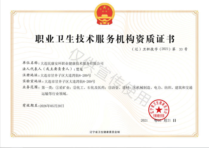 職業衛生技術服務機構資質證書