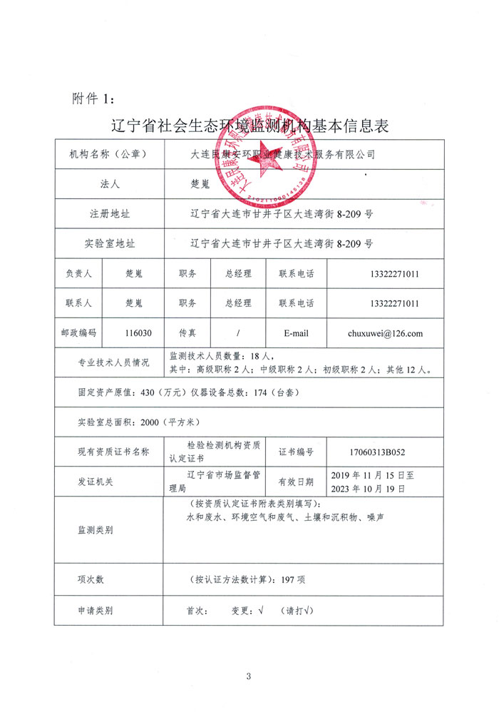 大連民康安環基礎信息表